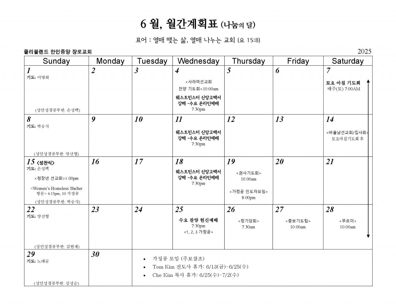 2025, 6월 월간계획표