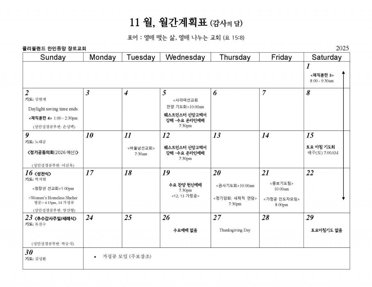 2025, 11월 월간계획표