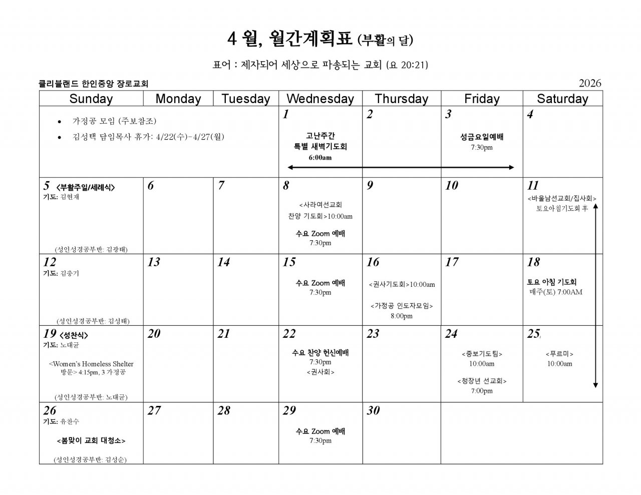 2026, 4월 월간계획표