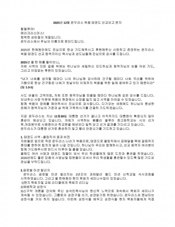 온두라스 권영갑 선교사 선교보고 편지